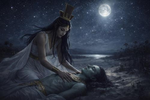 Среди песков и храмов звучит трагическая история Осириса — мудрого царя, убитого собственным братом Сетом. Его тело было расчленено и разбросано по земле, но верная Исида собрала останки, вдохнула в него жизнь и зачала сына — Гора. Этот миф — о верности, возрождении и праве на трон. Гор, выросший и окрепший, вступает в поединок с Сетом, и их борьба символизирует вечное противостояние порядка и разрушительной стихии. Осирис же становится владыкой загробного мира, судьёй душ, и именно перед ним умерший проходит суд: сердце кладут на весы против пера Маат. Если оно легче — душа обретает покой, если тяжелее — её пожирает чудовище Аммат.